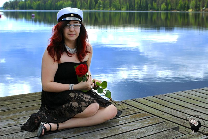 Sain siis kunnian ottaa sunnuntaina Mallusta hänen yo-kuvat. Kuvia tuli otettua aika monta, kun mä vähän innostuin. Kuvauspaikkana toimi todella kiikkerä laituri, joka kallistu koko ajan suuntaan jos toiseen. Siinä saiki miettiä kuinka lähelle toista pysty menemään. Saatiin kuitenkin iso kasa onnistuneita kuvia. (ainakin mun mielestä) Sain Mallulta luvan julkasta nää kolme kuvaa tännekkin.