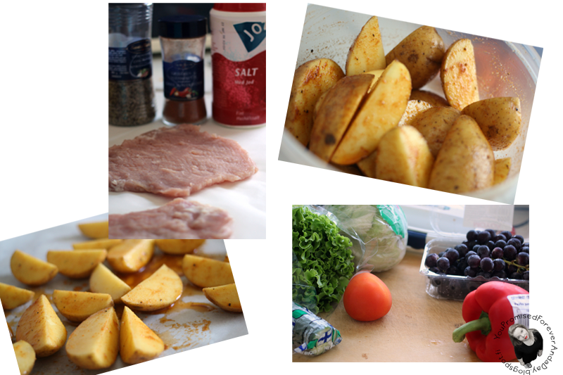Viime aikoina oon syöny aika monesti just pihviä, lohkoperunoita (itse tehtyjä), salaattia ja grillijuustoa (pannulla paistettuna, maistuu yhtä hyvälle ku grillattuna). En yleensä tykkää syödä perunaa hirveesti, mutta nää lohkoperunat on vaa tosi hyvän makusia. Grillijuustoon taas rakastuin mökillä.