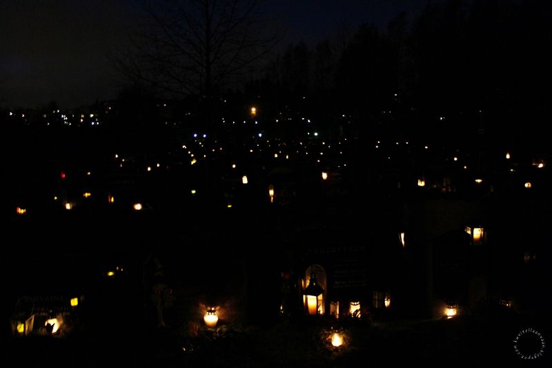 Käytiin joulupäivänä hautausmaalla viemässä haudalle kynttilä ja hyasintti. Toivoin ja pyysin vanhemmilta, että jos voitaisiin mennä vasta illan pimennyttyä. Sillä tiesin siellä palavan tuhansia ja taas tuhansia kynttilöitä. Tunnelma oli tosi koskettava ja vaikuttava sekä siellä oli todella kaunista.
